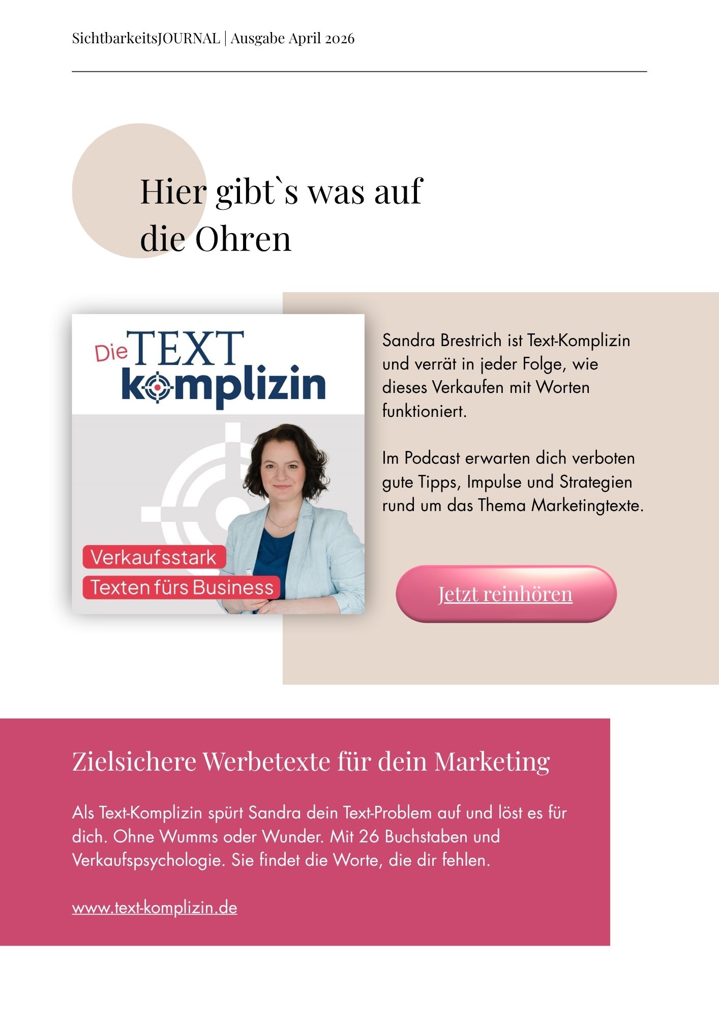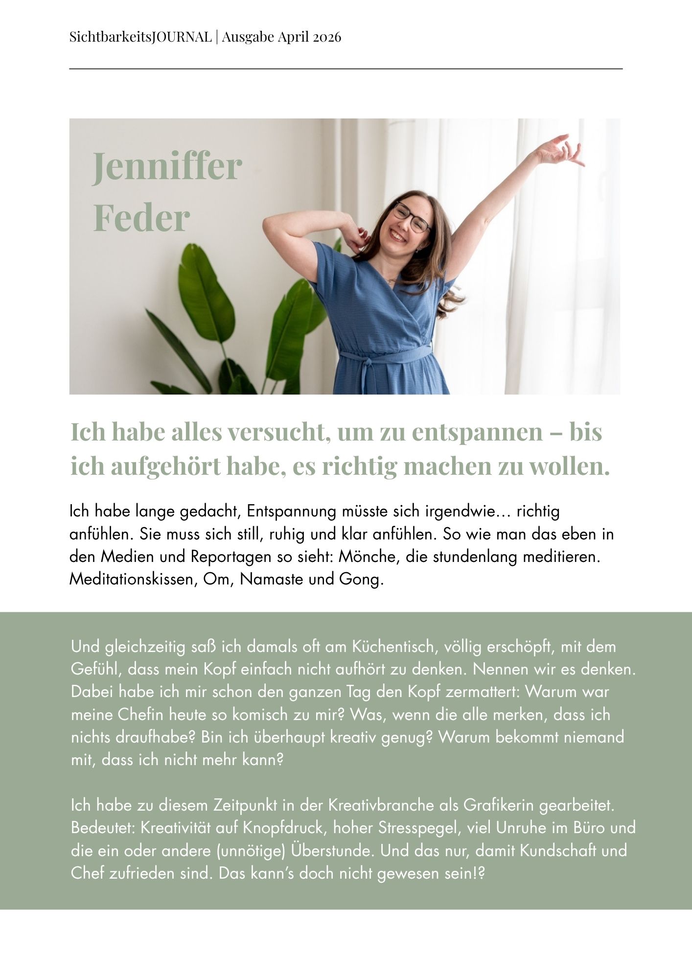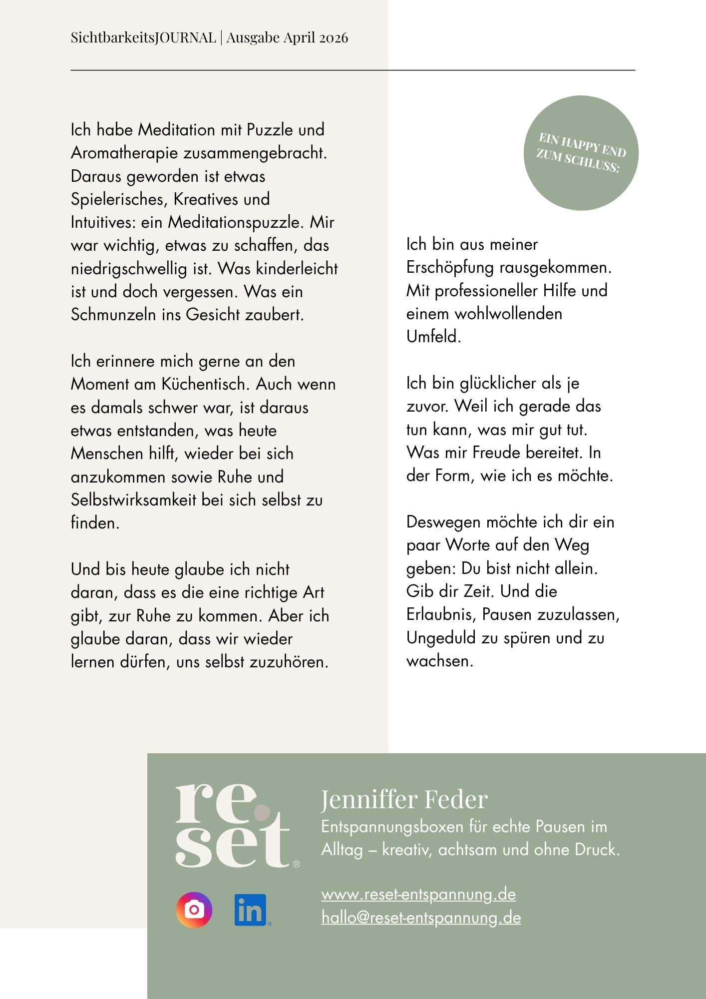 Dein Platz im Journal + meine aktive Bewerbung auf LinkedIn & Instagram sorgen dafür, dass du nicht übersehen wirst.