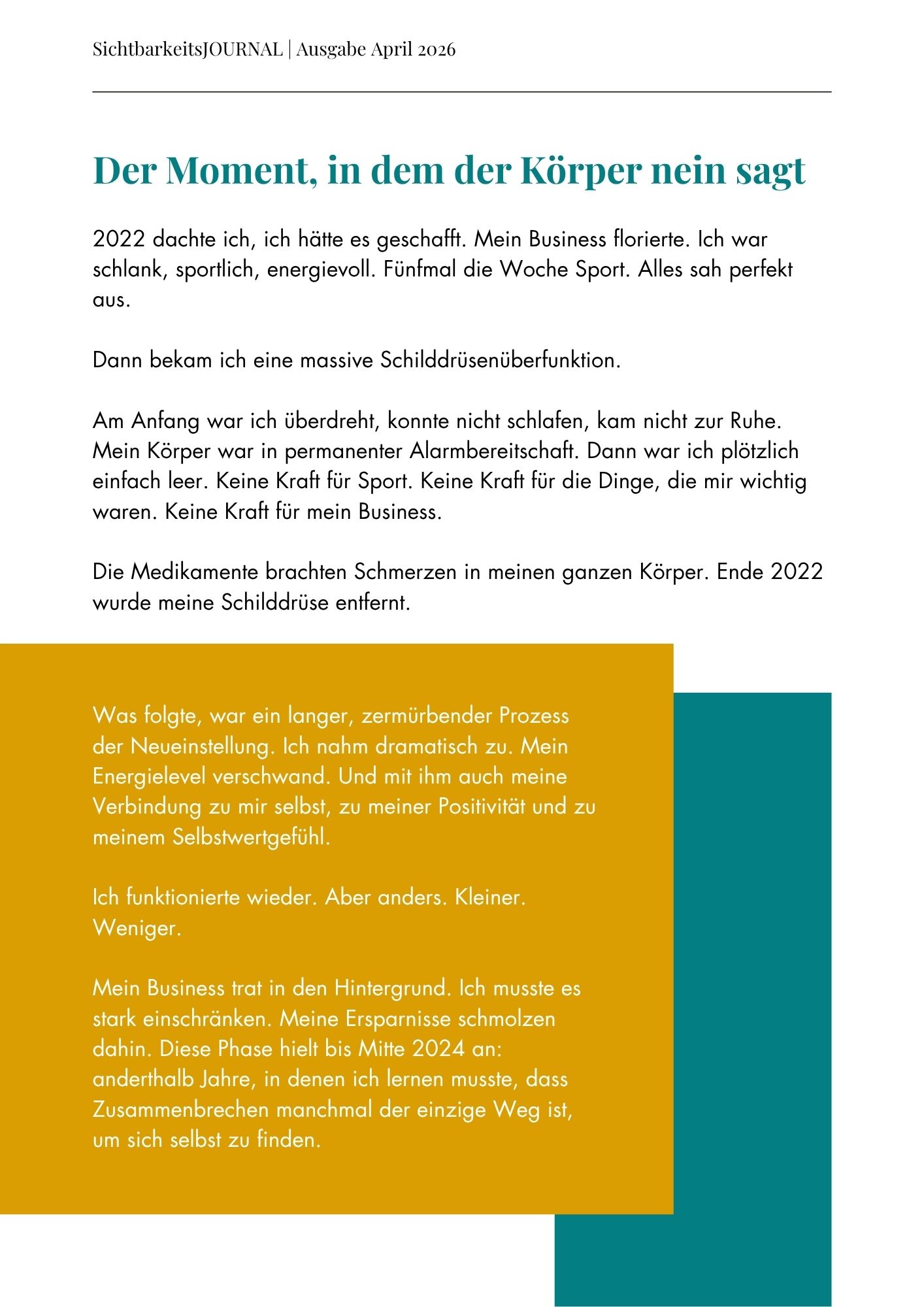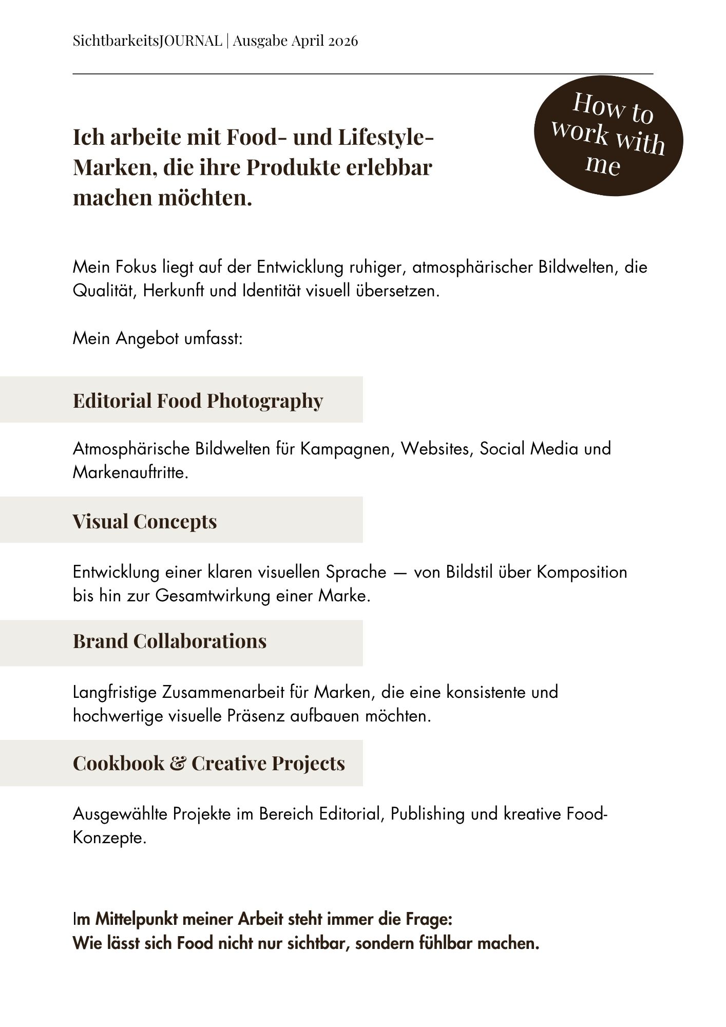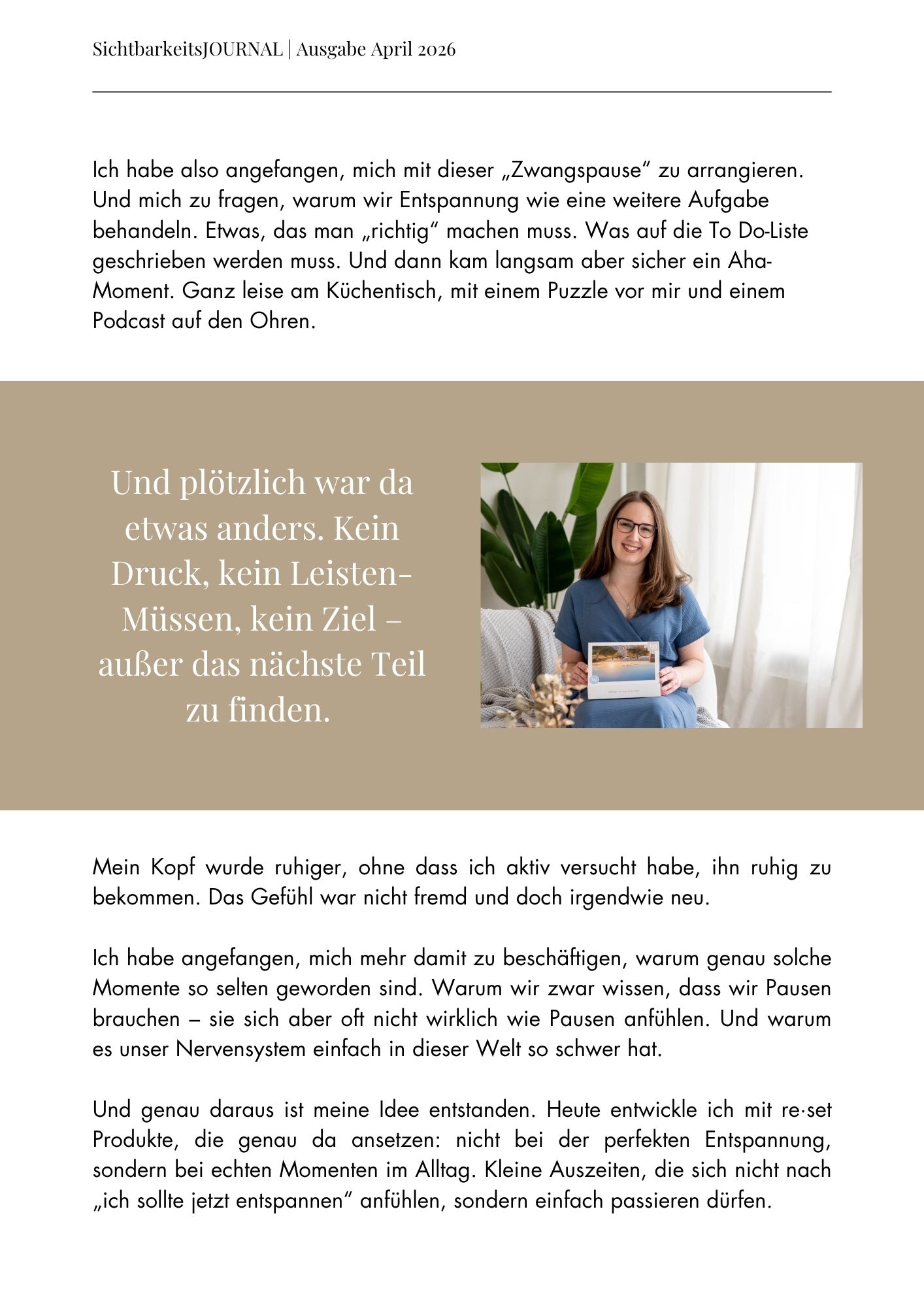 Dein Platz im Journal + meine aktive Bewerbung auf LinkedIn & Instagram sorgen dafür, dass du nicht übersehen wirst.